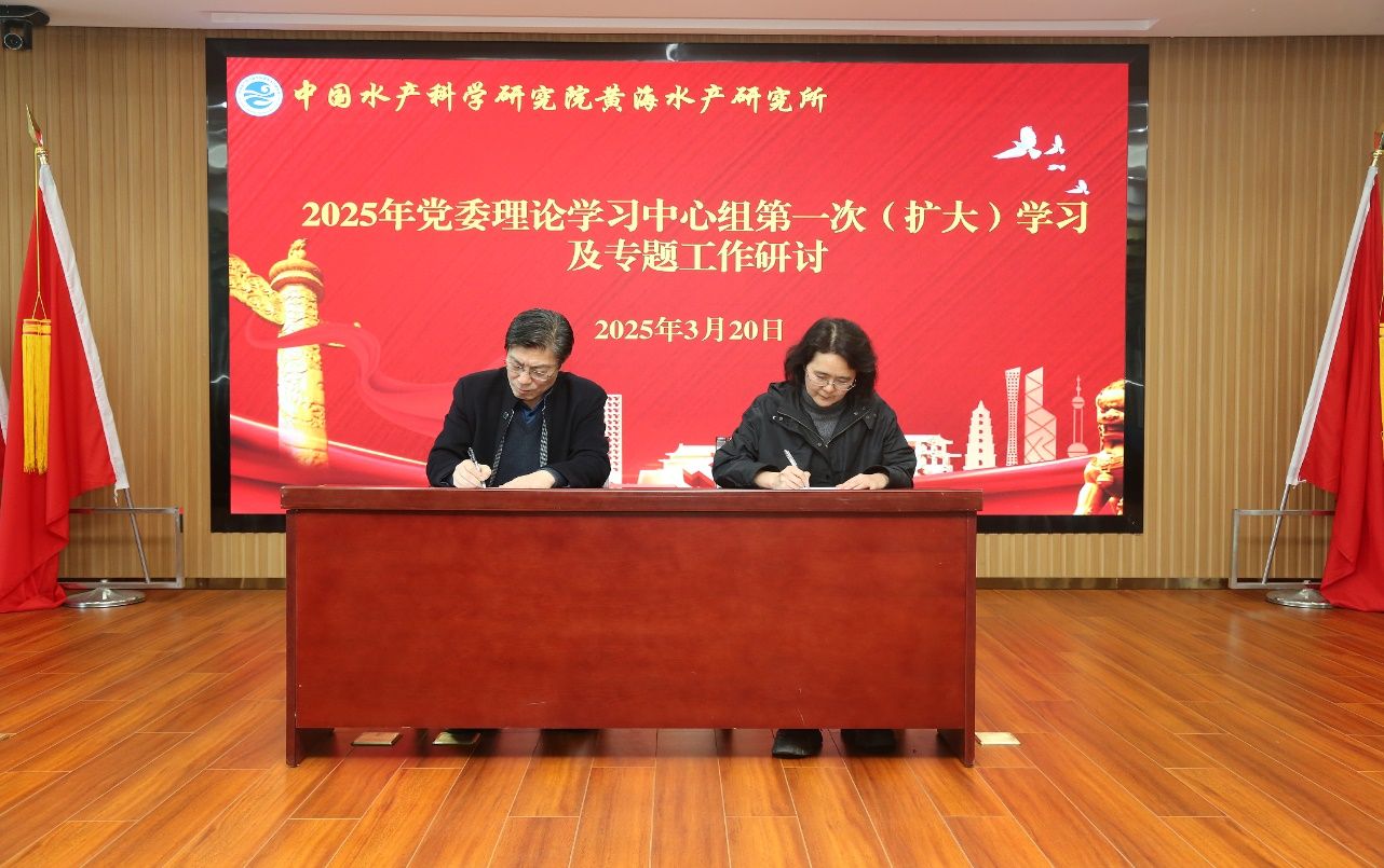 3月20日至21日,中国水产科学研究院黄海水产研究所结合所务会召开2025年党委理论学习中心组第一次(扩大)学习及专题工作研讨?;坪K澄?、各支部书记以及各部门、各基地负责人参加了学习,学习由纪委书记、副所长荣小军主持。