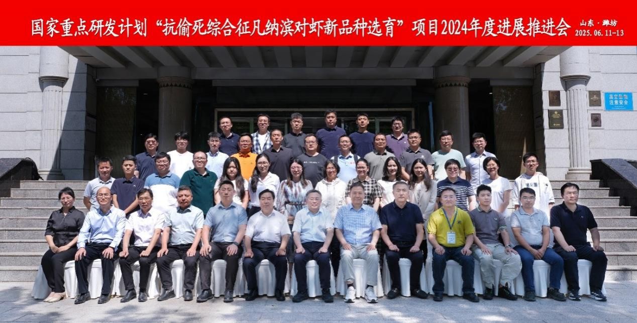 6月11日至13日,潍坊对虾种业创新研讨会暨国家重点研发计划“海洋农业与淡水渔业科技创新”专项项目“抗偷死综合征凡纳滨对虾新品种选育”2024年度项目工作进展推进会在山东省潍坊市召开。潍坊市海洋与渔业局局长李庆华,中国水产流通与加工协会副会长兼秘书长王雪光,中国海洋大学包振民院士、海南海壹水产种苗有限公司董事长王昌翰,江苏省海洋水产研究所万夕和研究员,广东省恒兴饲料实业股份有限公司水产种苗研究所所长陈奕彬,渤海水产股份有限公司总经理张小飞,信邦海洋生物科技有限公司文昌分公司副总经理胡绍令,山东恒兴种业科技有限公司执行董事兼总经理邓传燕,中国水产科学研究院观察员胡博旸(线上),中国水产科学研究院黄海水产研究所有关项目、课题负责人,项目骨干等100余人参会。