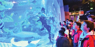 双休日期间,一场主题为“海洋馆奇妙夜·我爱大自然”主题研学活动在天津海昌极地海洋公园举行。现场青少年们通过夜宿海洋馆、观看惊险刺激的海豚海狮表演、生动有趣的知识讲座和科普、趣味横生的互动项目,让孩子们跟着课本去旅行,将课本和世界链接在一起,在行中学,在学中悟。