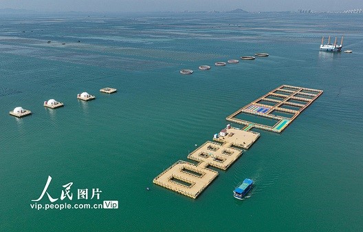2022年5月27日,在山东省荣成市寻山街道爱伦湾国家级海洋牧场,讲解员带领小学生们通过浸入式的体验方式,了解海洋生物知识,体验与海洋生物亲密互动的乐趣,探寻海洋生物的成长特性,在研学中体验丰富多彩的海洋文化。