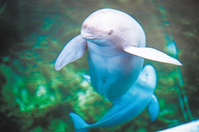 6月29日,在中国科学院水生生物研究所白鱀豚馆,长江江豚幼豚“F9C22”与母亲“福久”在水中游动,如影随形,其乐融融。6月27日,在科研人员的监护下,“福久”于21时35分左右顺利分娩,幼豚编号为“F9C22”,这是人工繁养长江江豚取得的新成果。