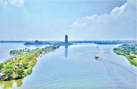 夏日的胶州少海风景区一湖碧波,游船穿梭,景色如画。风景区位于胶州湾西北岸,是胶州市近年来重点打造的国家级水利风景区,在良好的自然生态环境基础上融合了胶州悠久历史文化和民俗风情,成为宜居宜游的现代化滨水景区,吸引了大量亲水禽类到此栖居,并成为当地近郊休闲游目的地。