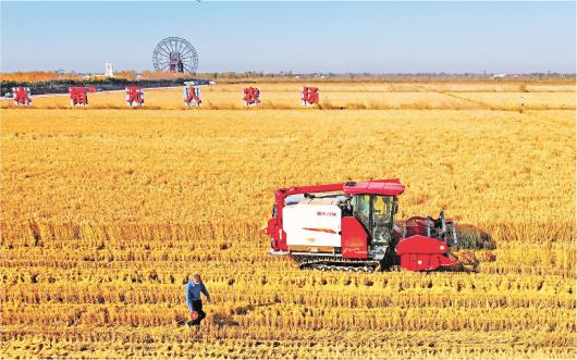 按照国家标准14.5%的水分折算,海水稻基地编号BY018的耐盐碱水稻品种亩产为698.4公斤,海水稻基地亩产再创新高,实现四连增。今年,该基地海水稻种植面积达到了5.8万亩,海水稻三产融合发展效益更加凸显。