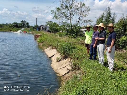 7月20日至25日,团队成员应《水产前沿》杂志社的邀请,参加了在广东湛江举行的“2020土塘高效健康生态养虾技术研讨会”。团队学术带头人王印庚研究员就“?;ⅰ钡淖钚卵芯拷辜捌浞揽丶际踝鲎ㄌ獗ǜ?。会后,团队成员继续赴广东湛江、广西北海、钦州等地区的对虾育苗和养殖企业进行调研,查验分析、科学指导养殖户防控疾病,为一线养殖户排忧解难。