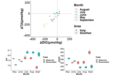 研究结果表明,规模化贝藻养殖是桑沟湾内海水碳酸盐体系时空变化的主要生物控制因素。海带通过吸收水体中无机碳,提升海水的pH和碳酸钙饱和度,维持海水碳酸盐系统稳定,为贝类等钙化生长提供适宜生长、发育的环境;牡蛎养殖区表现出快速的碳酸钙沉积现象,单位水体的钙化速率甚至超过珊瑚礁生态系统,研究结果证实了贝藻多营养层次综合养殖模式是一种绿色高效的生态养殖模式,不仅具有较好的经济价值,同时可为减缓全球气候变化的影响提供应对策略。