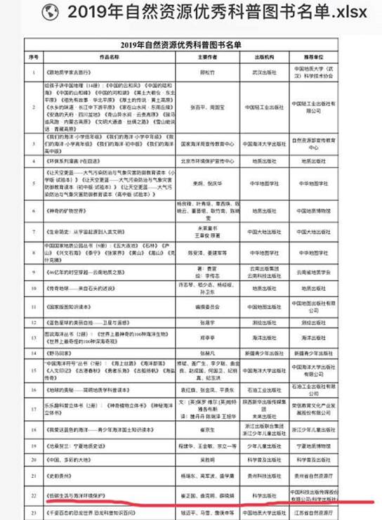 据悉,此次是黄海水产研究所科普作品首次入选自然资源部优秀科普图书名单,将对海洋环境保护和科学知识普及起到重要的推动作用。