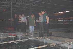 验收专家组听取了史宝副研究员代表课题组做的星康吉鳗工厂化循环水规?;臣际跹芯抗ぷ饔爰际趸惚ǎ谙吖劭戳搜匪诚低车乃掠跋褡柿?,查阅了养殖管理记录,现场察看了星康吉鳗工厂化循环水规?;车那榭?,随机抽查、测定星康吉鳗存养量。专家组认为,课题组建立了循环水系统水质微生物调控技术和循环水聚容养殖技术等适应星康吉鳗养殖的七项新技术,并采用三套循环水系统进行了循环水星康吉鳗养殖模式研究,获得星康吉鳗的总存养量为19589公斤。项目首席科学家黄海水产研究所曲克明研究员对该子任务完成情况进行了总结点评。