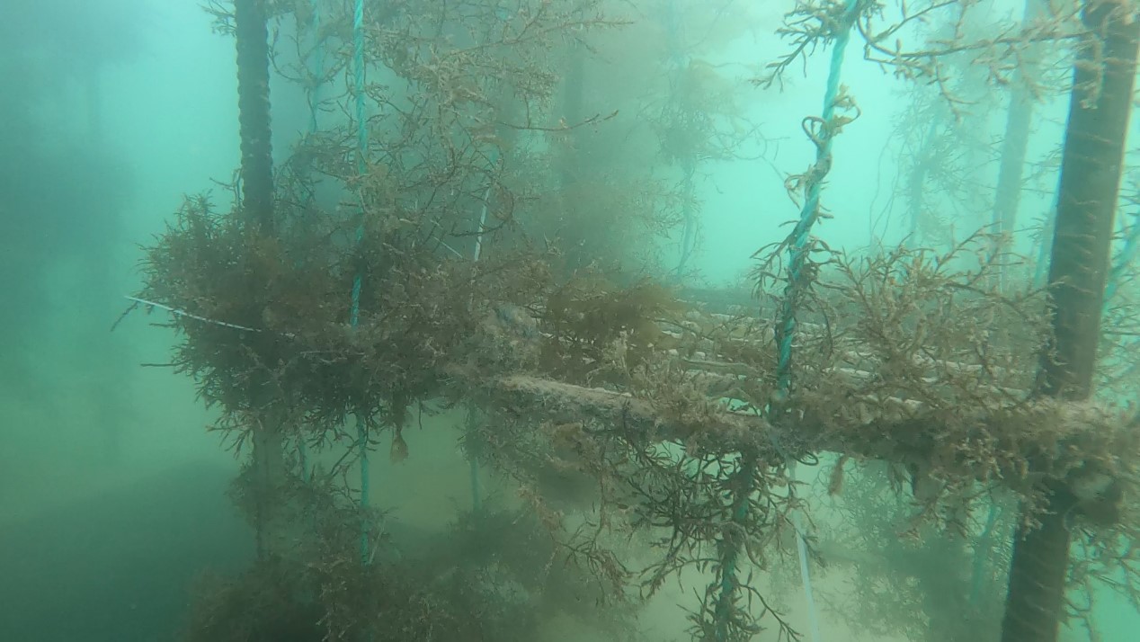 验收专家组踏勘了莱州湾人工鱼礁生态修复示范区现场,听取了课题组的工作汇报,查阅了相关资料,一致同意通过现场验收。莱州湾人工鱼礁生态修复示范区总面积2334亩,投放各类鱼礁10.2万空立方米,人工鱼礁布放合理;礁体表面和周围附着或聚集牡蛎、刺参、脉红螺、三疣梭子蟹、许氏平鮋和大泷六线鱼等大量渔业生物,生物资源养护效果显著;课题组自主研发的多营养级人工鱼礁设施状态稳定,形成了上层藻类、中层鱼类、底层海珍品的多元生境。