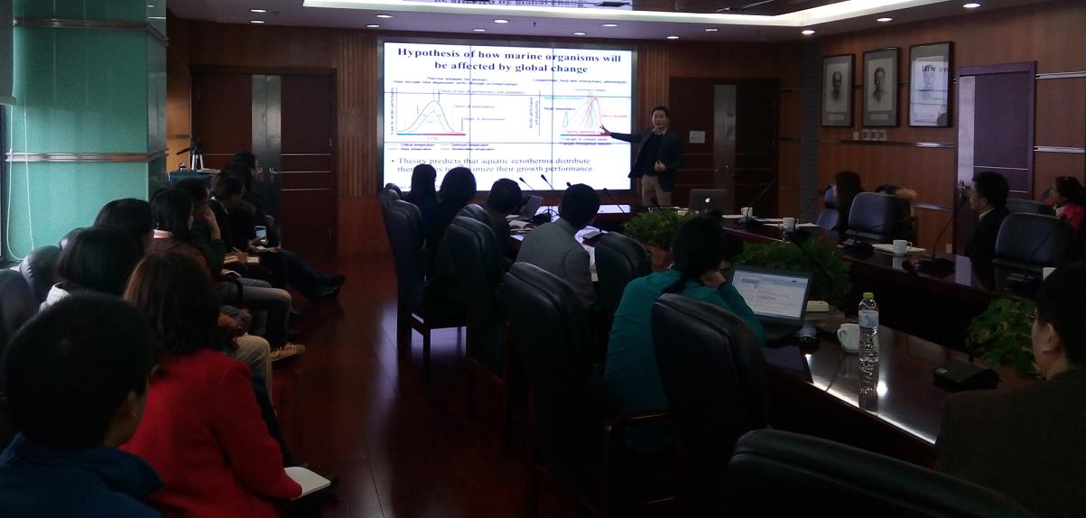 2015年11月16日,加拿大不列颠哥伦比亚大学海洋与渔业研究所的William Cheung博士和Vicky Lam博士到黄海水产研究所开展学术交流,来自黄海水产研究所和中国海洋大学的相关科研人员、研究生共40余人参加了交流会。