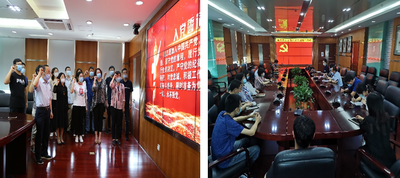 支部全体党员共同观看了《榜样讲党课》的视频,抗疫过程中榜样们感人的事迹、动人的讲述令支部全体党员对齐鲁抗疫英雄们牺牲小我、成就大我的奉献精神肃然起敬。在支部书记关长涛的带领下,支部全体党员面对鲜艳的党旗,齐声重温入党誓词。