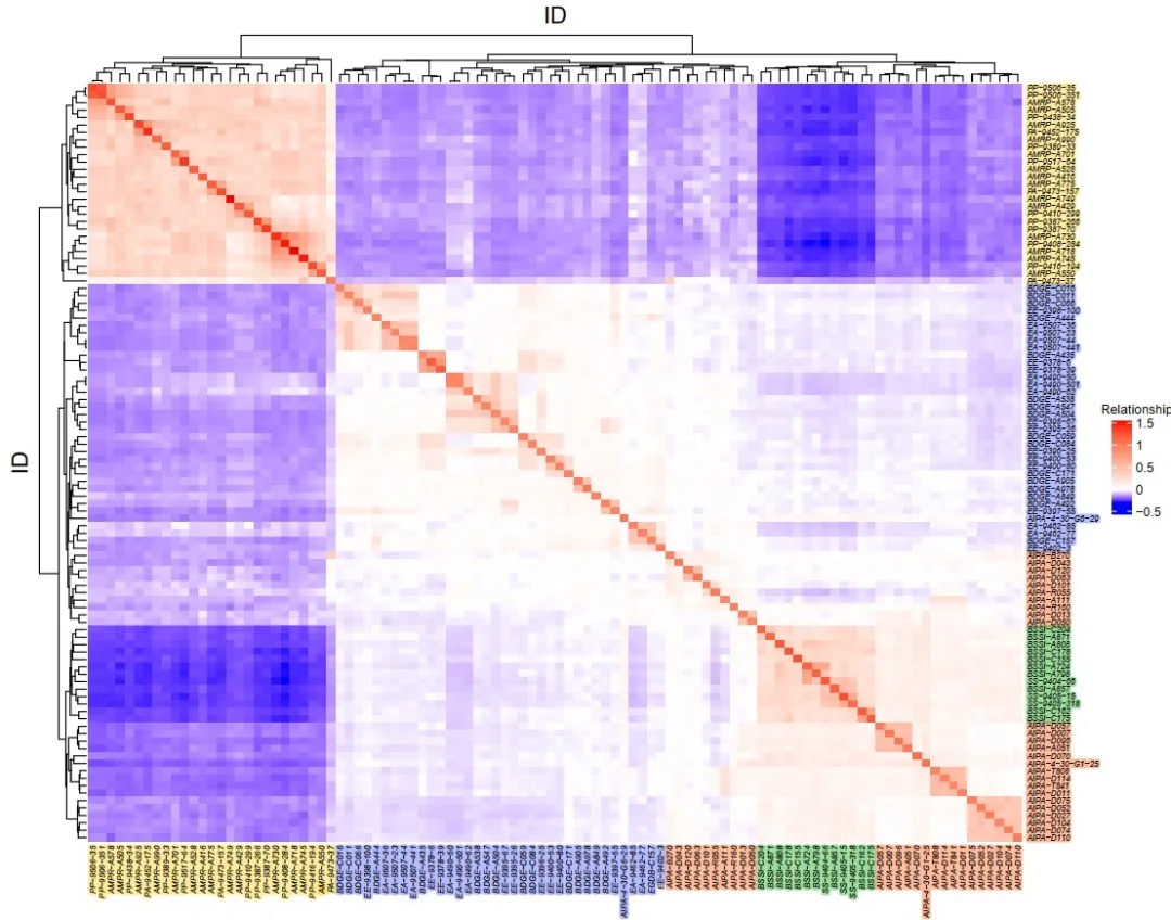 图3,世界上主要对虾品系的“黄海芯1号”亲缘关系热图