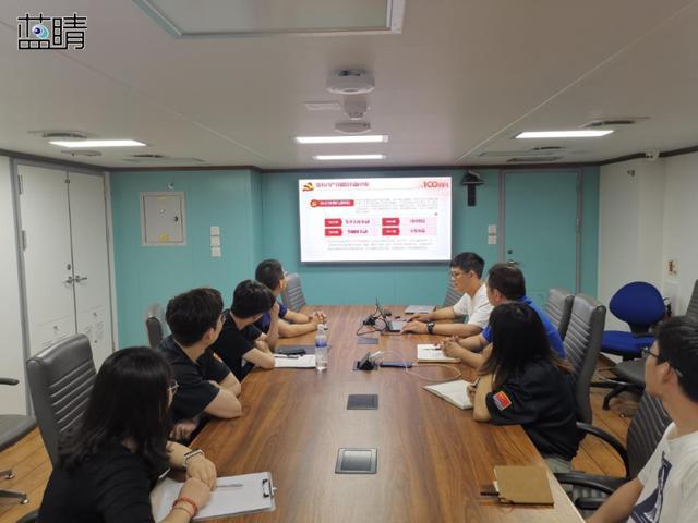 本航次为32个国家自然科学基金委项目提供共享服务,而其中大部分项目负责人及参航人员都在40岁以下,都是活跃在海洋领域科研一线的青年骨干力量。为保证疫情期间各项调查工作顺利进行,夏季航次组建了临时党支部,以党建为引领,将政治学习与业务工作相结合。在科研调查间隙,临时党支部开展了“学党史、促科研、海洋强国有我”主题党日活动,集体学习了“习近平总书记在庆祝中国共产党成立100周年大会上的重要讲话”等一系列内容。