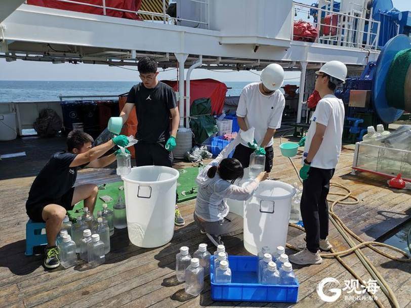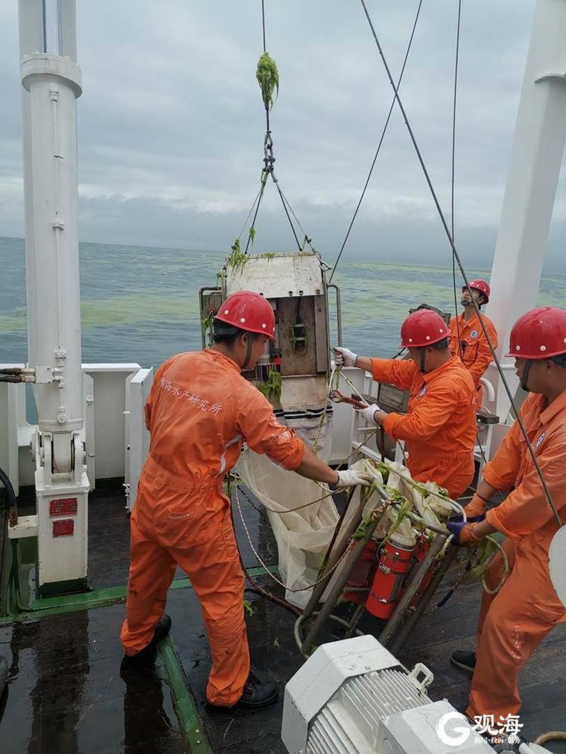 据本航次首席科学家滕广亮介绍,在气候变化和人类活动双重压力下,海洋生态灾害现象频发,严重威胁到海洋生态系统健康和可持续产出。本航次聚焦海洋生态灾害,为黄渤海生态系统健康做了“体检”,在常规关注的大型水母暴发对水层生态系统生物多样性和食物网的影响、??┓⒓捌淅┥⒍曰撇澈5灼苌低车挠跋斓瓤蒲侍庵?,还针对今年史上最大规模浒苔侵入青岛的背景,首次评估了绿藻浒苔暴发对重要渔业生物关键栖息地、产卵场、育幼场的鱼卵仔稚鱼的影响。