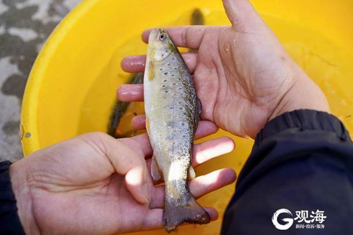 鲑鱼养殖专业合作社中捞出的亚东鲑鱼