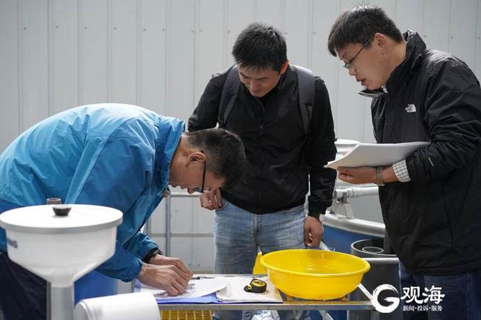 黄海所渔业科技援藏团成员对今年培育的35万尾鱼苗进行测长