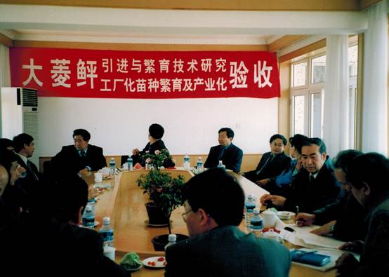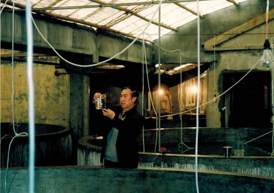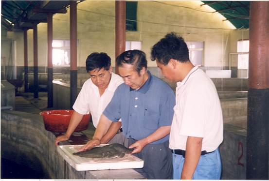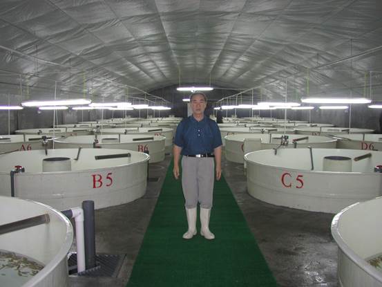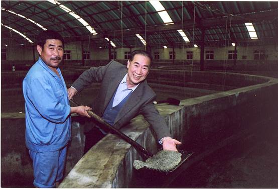 2006年5月,青岛亿海水产公司大菱鲆养殖车间(右一)