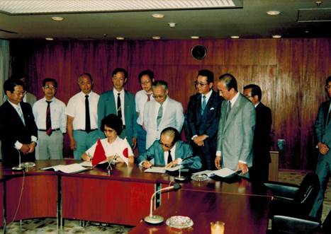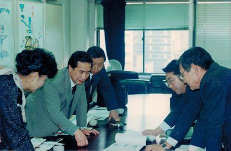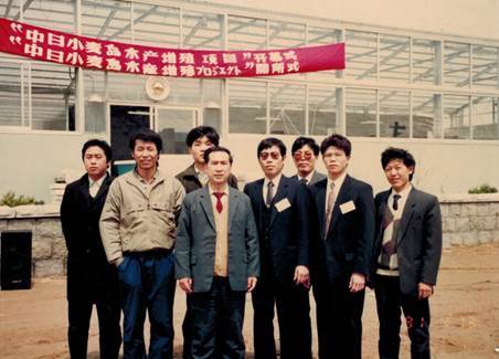1991年,“中日小麦岛水产增殖项目“开幕式合影(前排左二)