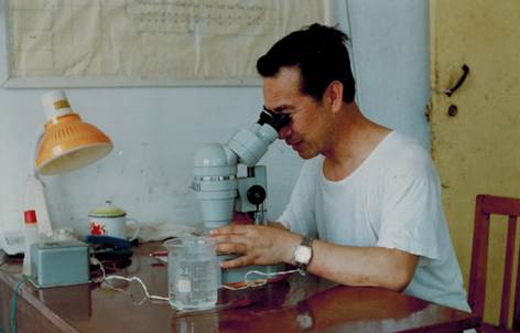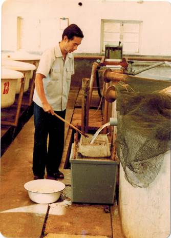 1970-1971年,青岛水族馆开展牙鲆育苗研究(右一)