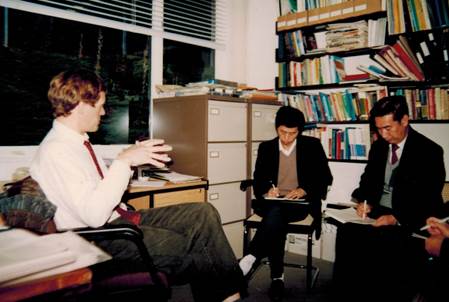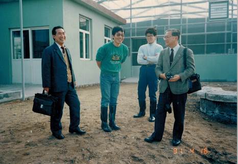 1991年,长崎大学多部田修教授访麦岛基地(左一)