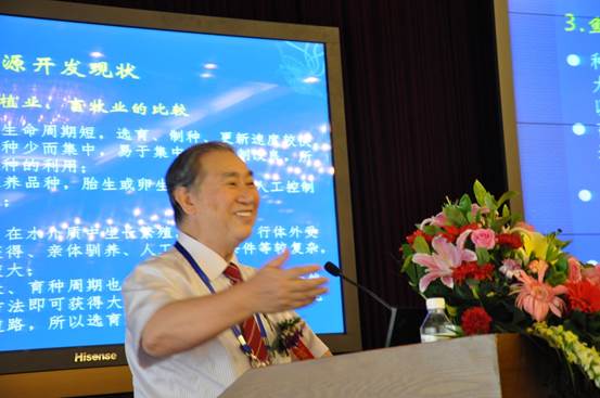2012年,“鱼类种子工程与可持续发展”论坛(青岛)作主题报告