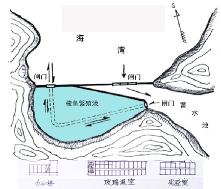 1960年,手绘日照市石臼所梭鱼生态系统繁殖试验池