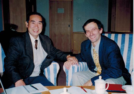 2002年,法国友人Didier Leclericq 在青岛交谈